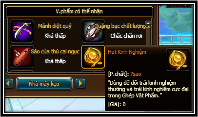 - Thay đổi vật phẩm “trái kinh nghiệm nhỏ” thành “Hạt kinh nghiệm” dùng để đổi vật phẩm trong tính năng Ghép vật phẩm (Cường Hóa)