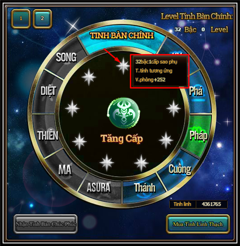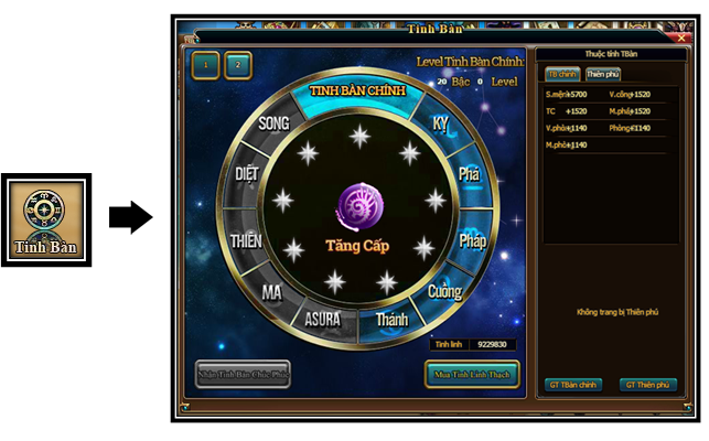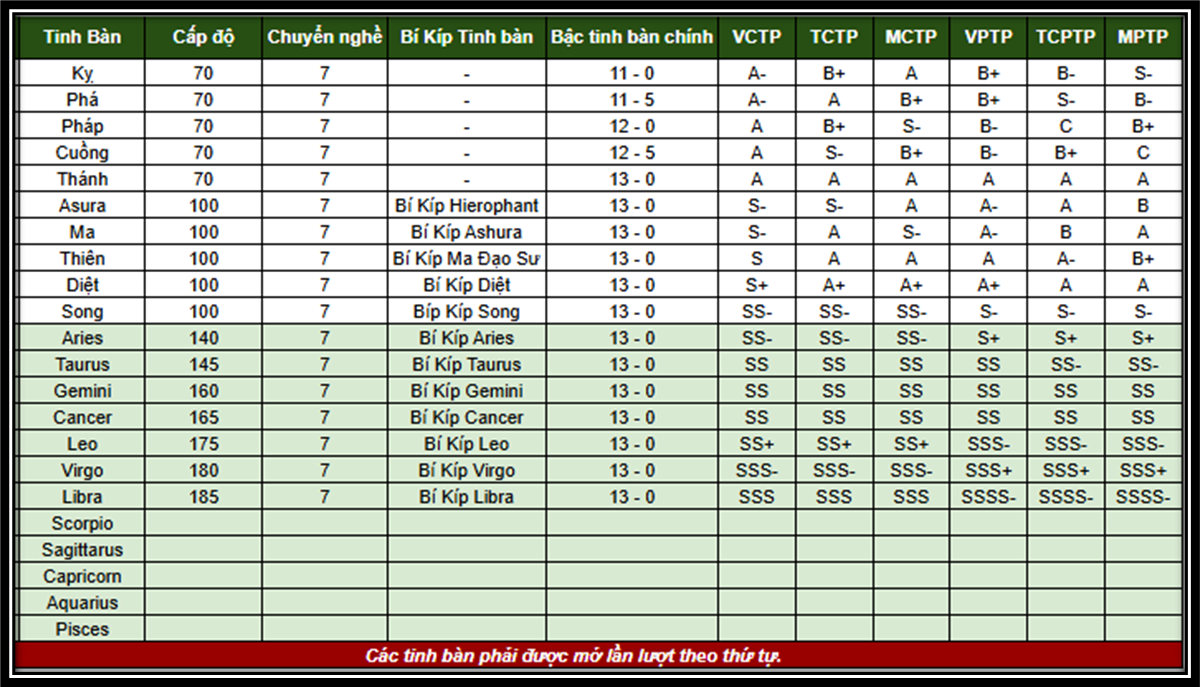 - Cứ mỗi khi nâng 10 level sẽ thăng cấp 1 bậc tinh bàn.