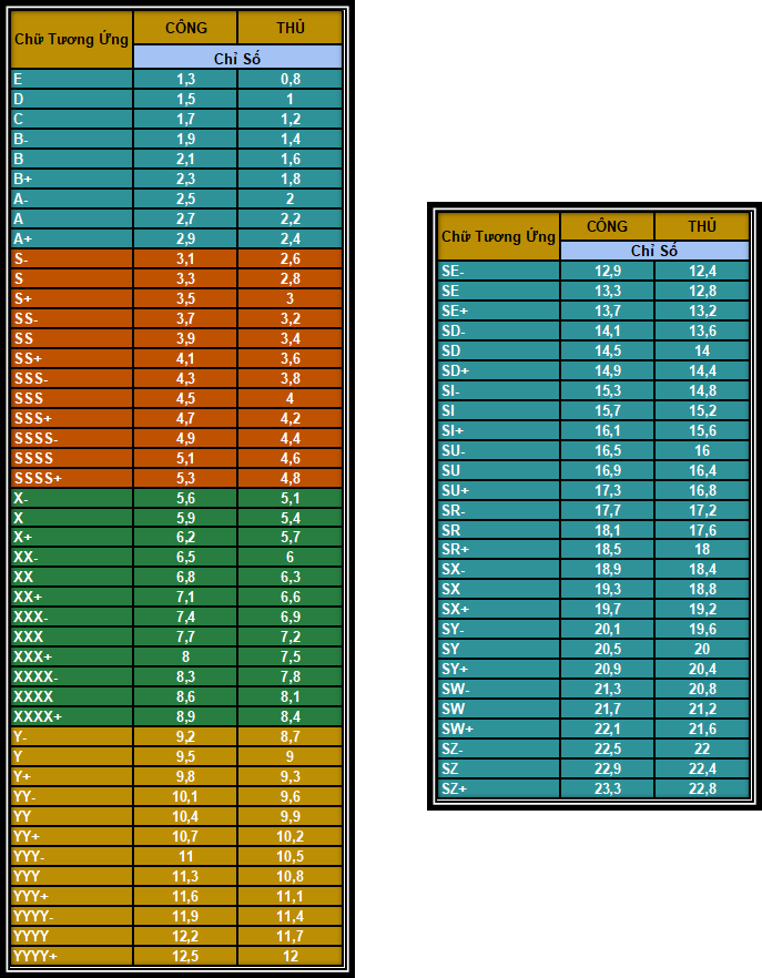 - Công TP: 3.65 chữ tương ứng sẽ hiển thị là “SS-” thay vì hiển thị “S+”